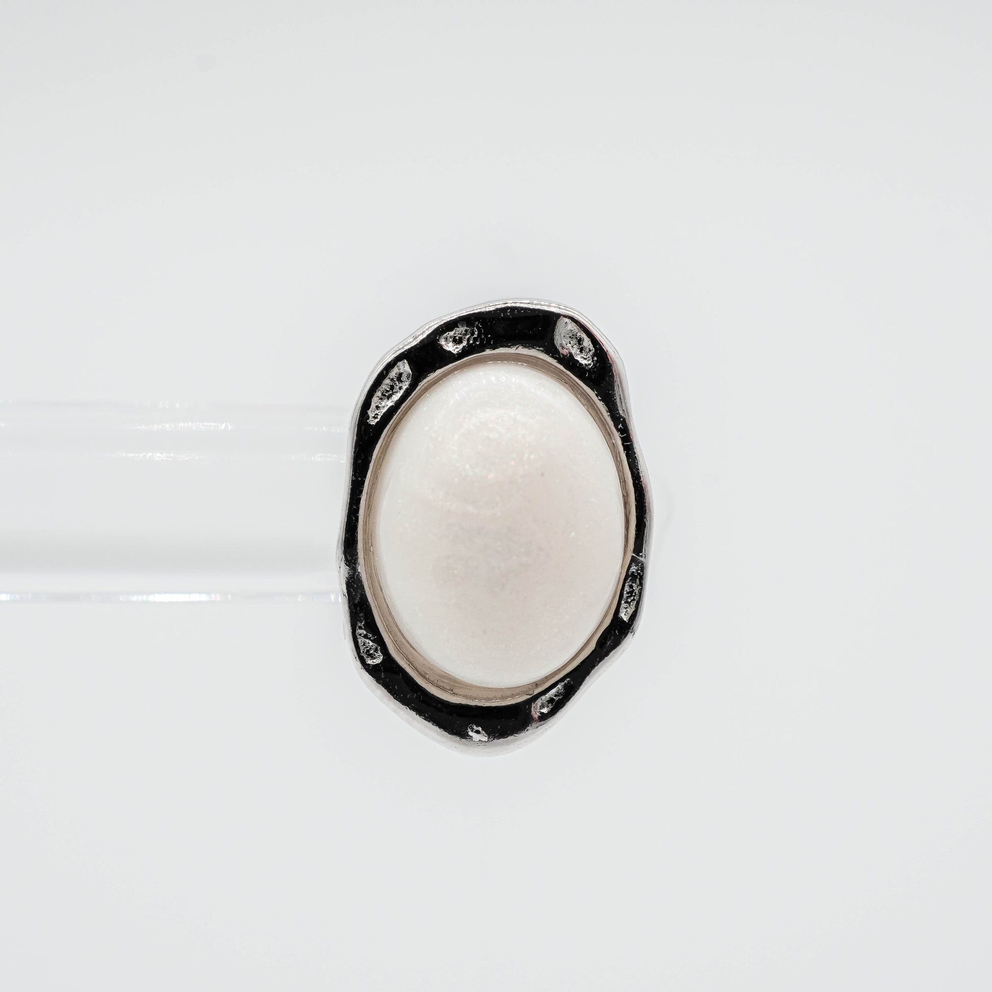 The Nomi Breastmilk Ear Studs are elegant sterling silver earrings that beautifully capture the essence of motherhood in a timeless oval design. Each stud features a luminous center crafted from your precious breastmilk, creating a pearl-like finish that's delicately framed by an intricate sterling silver border with modern vibe.